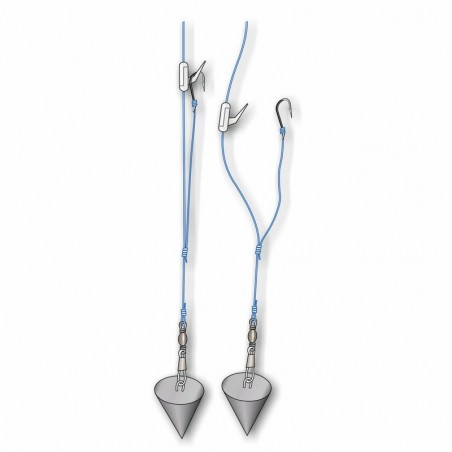 Pinza di sgancio della lenza per la pesca a traina con affondatore. Munita di uno speciale sistema che ne consente il bloccaggio direttamente sul cavo dell’affondatore. Dotata inoltre di pomello di regolazione...