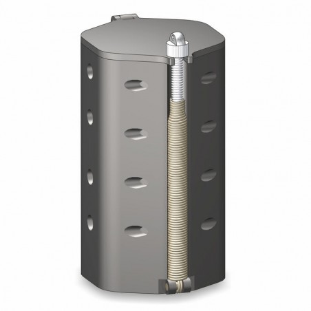 Pasturatore da barca preciso ed efficiente munito di un sistema di regolazione della forza di apertura. Riempire di pastura, sardine etc.etc., bloccare il coperchio e calarlo dalla barca con un cordino rigido...