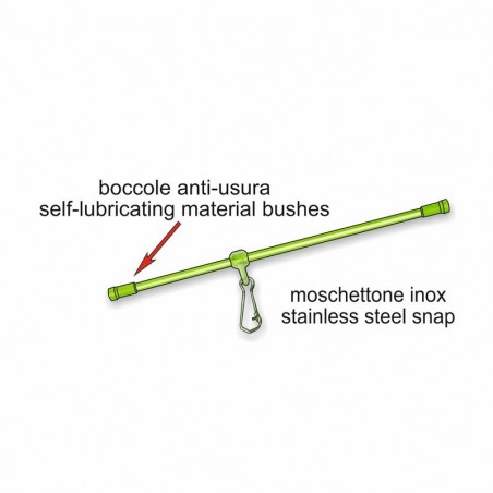 Antitangle scorrevoli resistentissimi. Prodotti in due misure. La girella con moschettone è montata su un perno in acciaio inox per una totale libertà di rotazione.