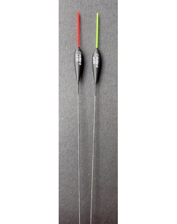 Galleggiante con asta in plastica e deriva in carbonio, ideale per la pesca sul fondo in condizioni di corrente leggera.