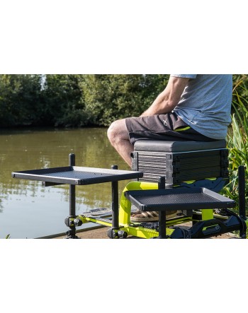 Vassoio laterale in stile tradizionale con una giunzione singola 3D-R Design leggero e compatto Ideale come secondo vassoio più piccolo oppure quando è richiesto un quantitativo minimo di esche al seguito Nuovo profilo esterno ottenuto tramite estrusione che fornisce rigidità addizionale Disponibile in due misure: Small (40cm x 40cm) Medium (57cm x 40cm) Si adatta a gambe rotonde di diametro 25mm, 30mm e 36mm