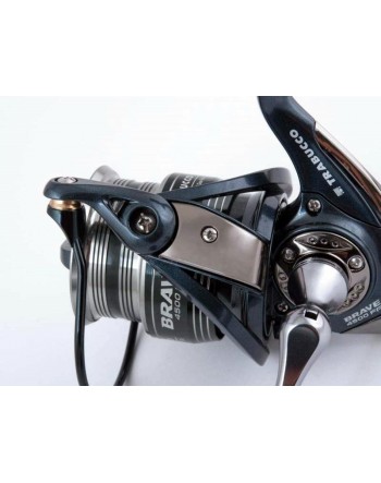 Mulinello con una linea estetica di grande impatto, che abbina una avanzata tecnologia costruttiva ad uno strepitoso rapporto tra qualità generale e prezzo. Realizzato con corpo e rotore in grafite e carbonio HR (X-Tra Tough Body), viene fornito con 6 cuscinetti a sfere in acciaio inox, sigillati sulle due facce; 1 cuscinetto a rulli in acciaio inox, necessario per controllare il dispositivo di antiritorno infinito; alberino e ruota comando in acciaio inox; frizione micro-regolabile a dischi sovradimensionati, alloggiati in un vano sigillato per evitare spiacevoli intrusioni di acqua o polvere; manovella tornita in alluminio con pomello sovradimensionato che consente un ottimo controllo; bobina tornita in alluminio con bordo superiore a “V” che facilita l’uscita della lenza in fase di lancio; archetto tubolare in alluminio a sezione maggiorata; rullino guidafilo Anti Twist rivestito in Titanio, ottimo anche con l’utilizzo di trecciati. Ideale per la pesca all’inglese o a feeder nelle misure 4500 o 5500, perfetto per lo spinning o la bolognese nelle misure 2500 e 3500.