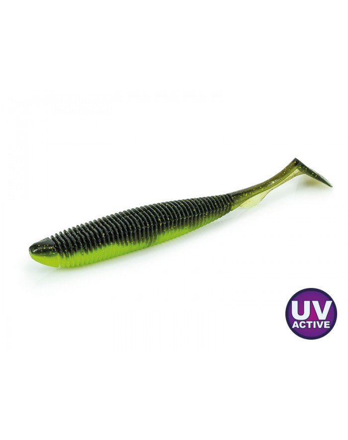 Soft Swimbait realizzata con una “magica” miscela ad alta densità, arricchita di un nuovo aroma a base di estratto di gambero e pesce. Forma e idrodinamica le conferiscono una stabilità e un nuoto molto naturale a qualsiasi velocità di recupero, con o senza pesi supplementari. Grande polivalenza ed efficacia sia in acqua dolce che salata. Length: 9 cm (3.5 in) Pack: 6 pcs